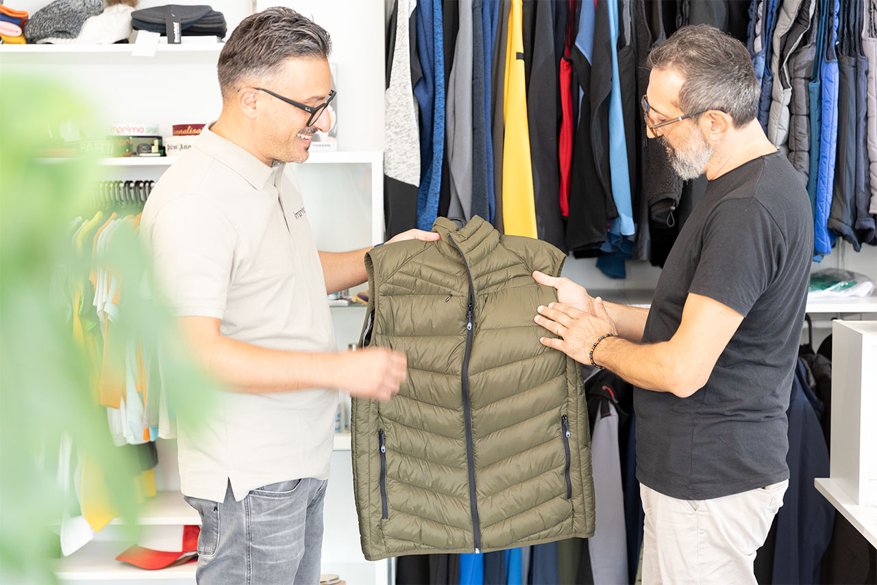 Grazie a un’ampia scelta di prodotti presenti nei nostri cataloghi, siamo in grado di studiare e selezionare sempre la soluzione più adatta, sia in termini di materiali sia in termini di colori desiderati. Oltre ai prodotti presenti nei nostri cataloghi, offriamo anche la possibilità di sola stampa e personalizzazione su articoli presentati dal cliente. Insieme, valutiamo se l’articolo proposto ci permette, in termini di composizione e di dimensioni, la personalizzazione richiesta, sia che si tratti di un capo di abbigliamento sia che si tratti di un gadget promozionale.